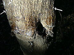 | A16.べとべとはアブラムシやカイガラムシ、ハゴロモ、カメムシなどが出す甘露だと思われます。体の中の糖濃度を調節するために余分な糖分を排泄するのです。枝などにそういった虫はいませんか?カイガラムシ以外は動けるので、いなくなっている可能性もあります。もしカイガラムシなら、たわしや歯ブラシで落とせば駆除できます。 あと、全体の状態がわからないので予想ですが・・・ 日当たりがよいということですが、寄植えというのが気になります。数本同じ場所に植えられている状態では、日当たりの良い場所といえども樹にとっては木の陰になります。寄植えされた1つ1つの個体別に葉の量を見てみてください。わけてみてみると、葉が少なくはないですか?お互いに被圧しあっている状態では、病害虫も入りやすくなります。 株立ちならば、1つの個体なのでいいのですが、寄植えはいくつもの個体が狭い場所を共有することになるので、光や土のスペースの取り合いになります。寄植えされた1本1本を観察して、元気そうな1個体だけを残して育てることが木にはよいと思います。残す木以外は根元で切り、引っこ抜いたりしないほうが良いでしょう。 |