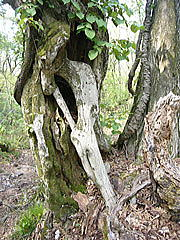 幹に傷などができると、木はその傷を治す細胞を作るか、枝を作るか根を作るか考える。そこに土のようなもの(虫の糞がたまっていたり、腐朽していたり)があると根を作ることにするようだ。